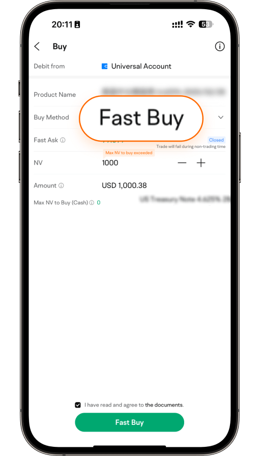 3.On the order page, enter the purchase nomination value (NV), select the buy method as "Fast Buy", and submit your order upon confirmation.